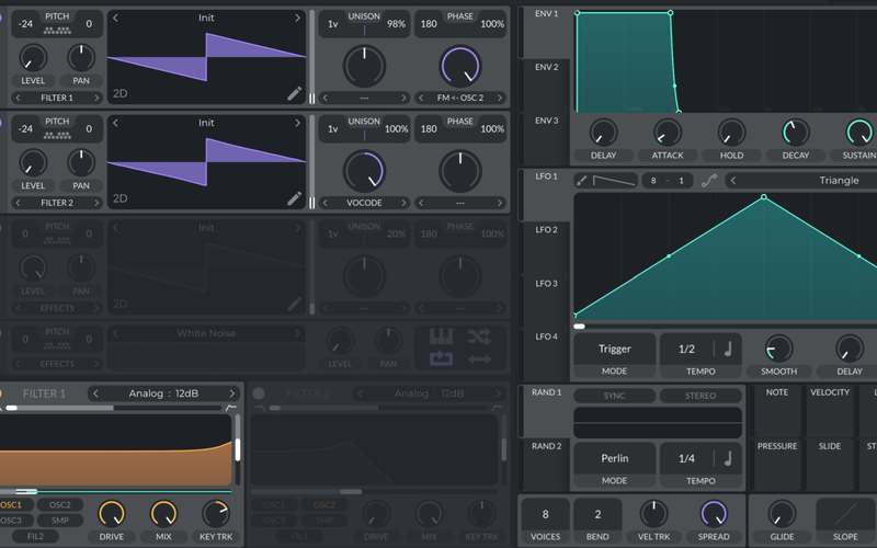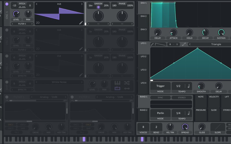 The pitch is down 13 Semi Tones and the unison is at 16 to add more voices and to thicken the sound resulting in a very nice sound. This is perfect for the track I made.